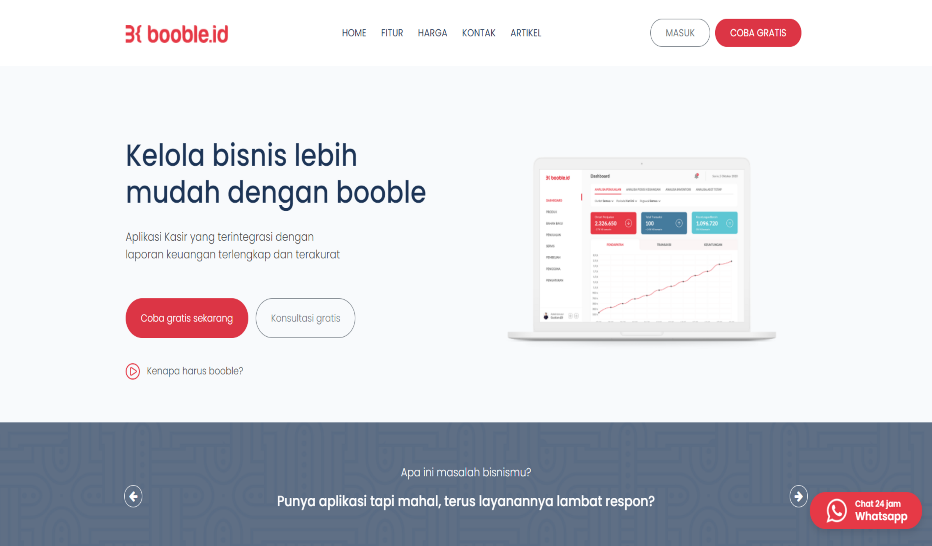 Mengembangkan dan memelihara website perusahaan Aplikasi Kasir dan Keuangan (Booble.id)