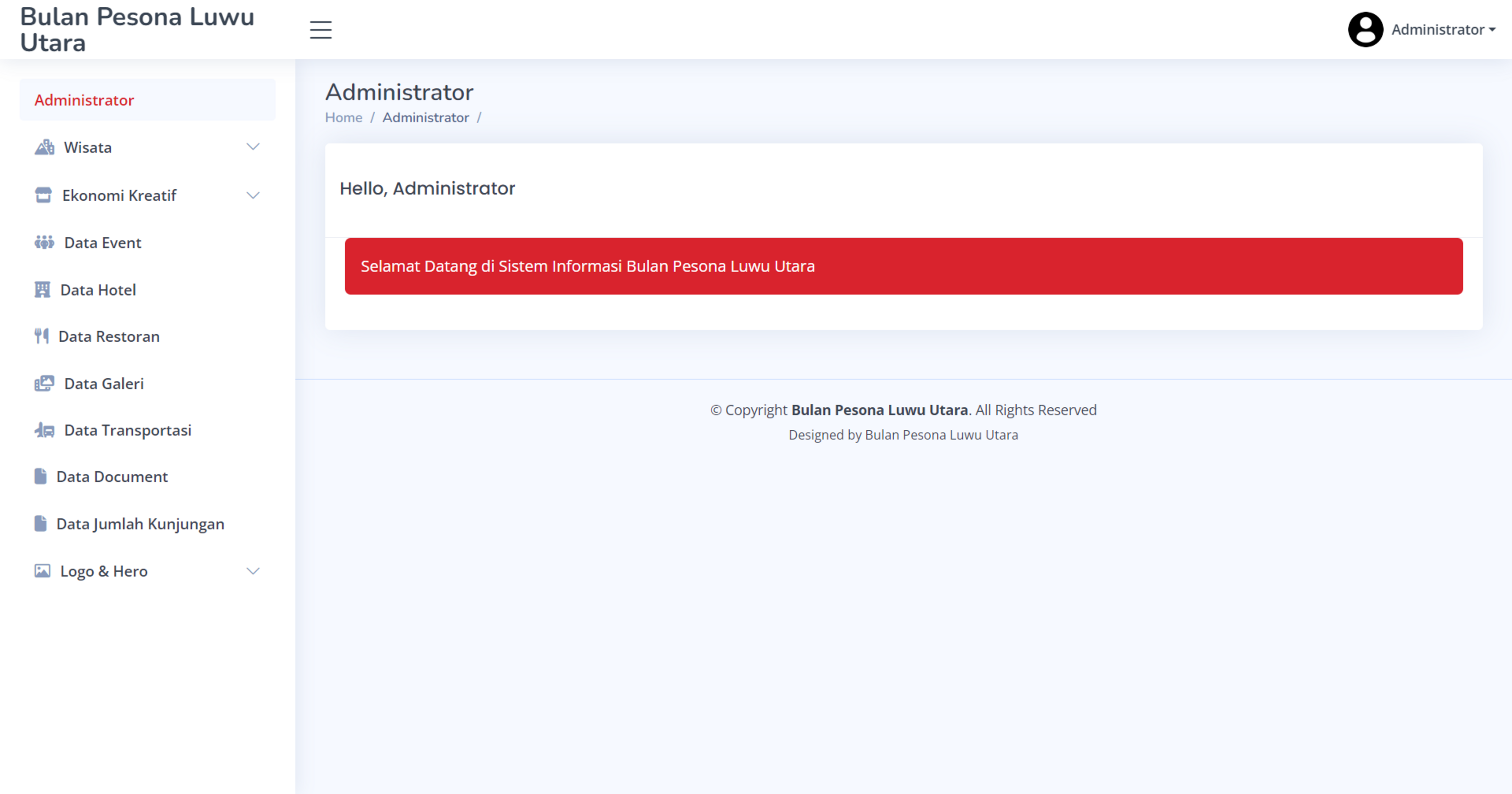 This project is a tourism management system developed for the Department of Youth, Sports, and Tourism of Luwu Utara. The system is designed to manage and promote the region's tourism activities, events, and creative economy through an organized and efficient digital platform. The system includes various admin features for managing: