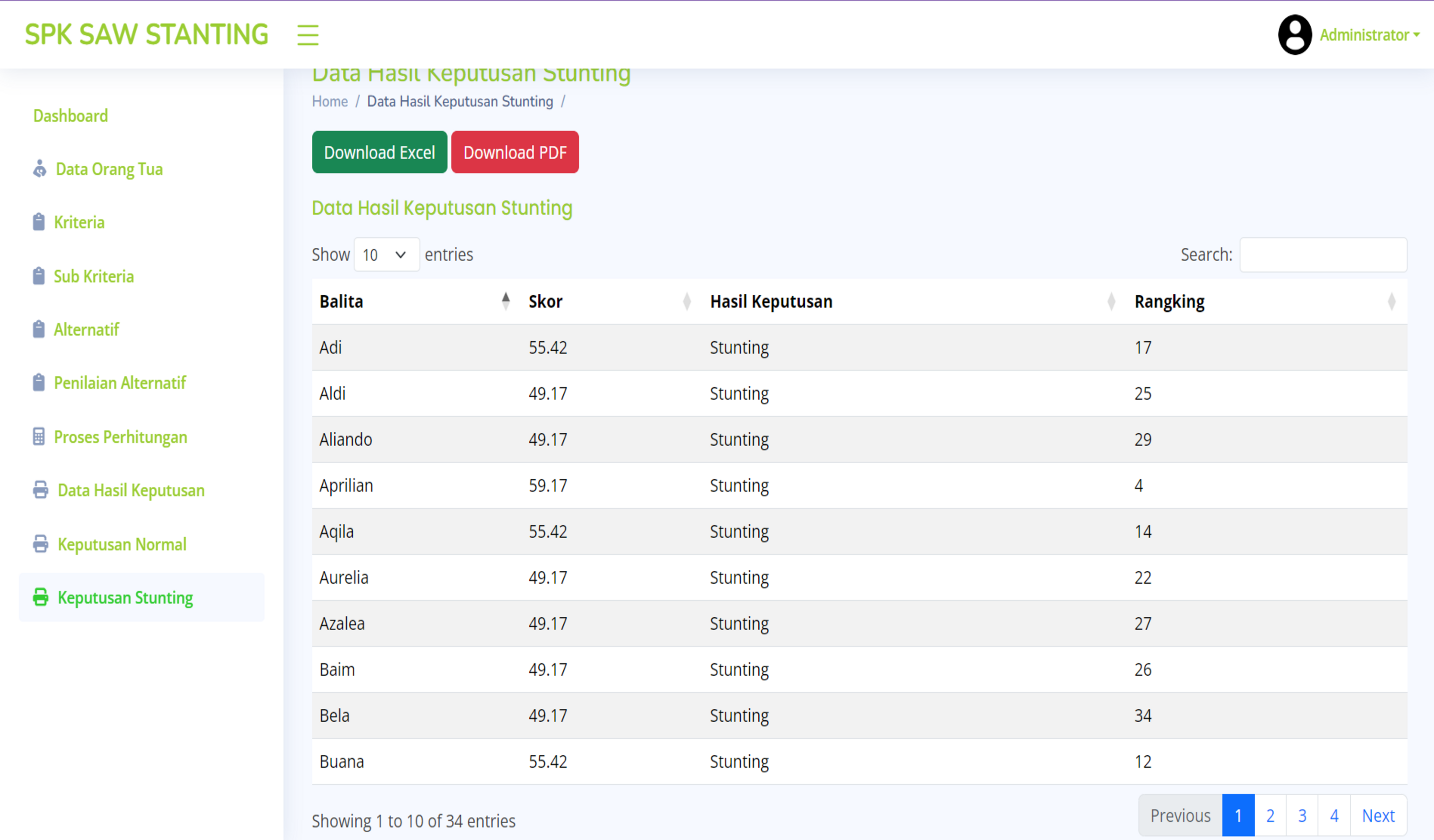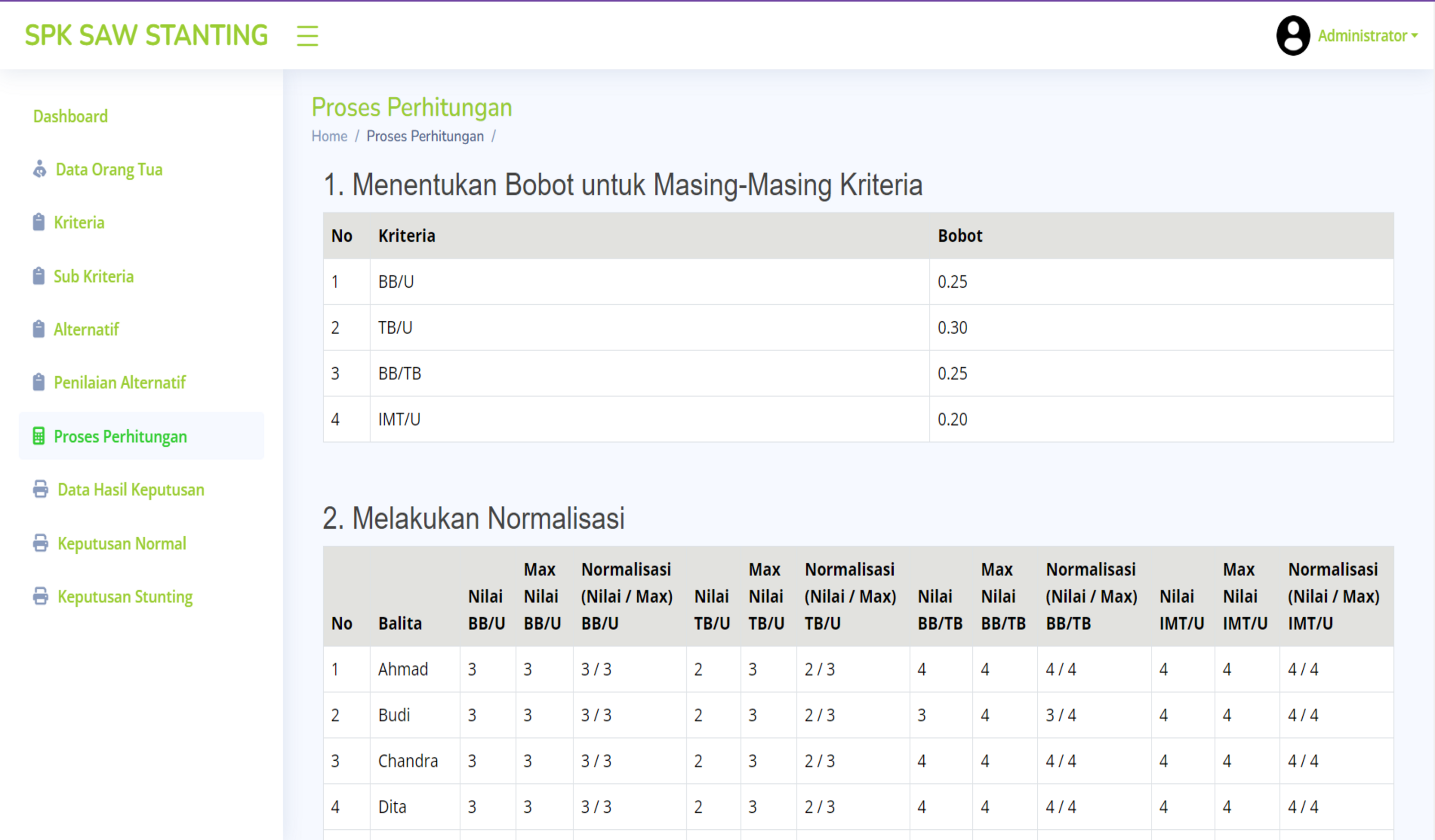 - Calculation Process: Employs the Simple Additive Weighting (SAW) method to rank and prioritize children based on multiple criteria.